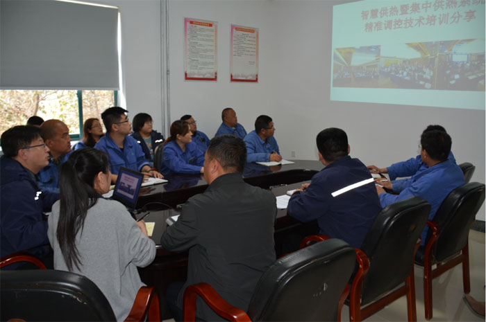 培訓會上,孫永剛從供熱企業(yè)實現(xiàn)智慧供熱的意義、二次網(wǎng)信息化平衡管理系統(tǒng)、二次網(wǎng)能耗問題解決方案以及換熱站故障處理和日常維護等方面進行了專項培訓。孫永剛在培訓會上指出,隨著國民經(jīng)濟的不斷進步,人們對供暖質量的需求也在逐步提高。近幾年,山東聚源熱力公司緊跟供熱行業(yè)發(fā)展趨勢,以科技引領供熱發(fā)展,充分借助物聯(lián)網(wǎng)、大數(shù)據(jù)、云計算著力打造智能化精準供熱,實現(xiàn)了智能熱網(wǎng)平臺系統(tǒng)項目的成功落地。系統(tǒng)集合了遠程數(shù)據(jù)采集、設備聯(lián)動控制、高清視頻監(jiān)控及大數(shù)據(jù)分析于一體,實現(xiàn)采暖季運行數(shù)據(jù)的匯總分析和趨勢測算,并實現(xiàn)系統(tǒng)自動通過熱源廠、換熱站所轄熱負荷用熱特性、圍護結構的不同,選擇不同的供熱控制策略,完成熱網(wǎng)調節(jié)周期由“日”級別到“分”級別的跨越。在實際工作中,如何科學運用好智能熱網(wǎng)平臺系統(tǒng),這就要求我們要充分認識打造智慧供熱的重要性,做好技術知識儲備,在信息采集時確保數(shù)據(jù)精準真實,根據(jù)運行數(shù)據(jù)反饋形成智能調控策略,不斷突破二次網(wǎng)平衡調整的瓶頸,擺脫對經(jīng)驗的依賴,從而不斷提高供熱管網(wǎng)設備的安全水平,降低能源利用效率和運行成本,有效提升企業(yè)的服務水平和用戶的舒適度。